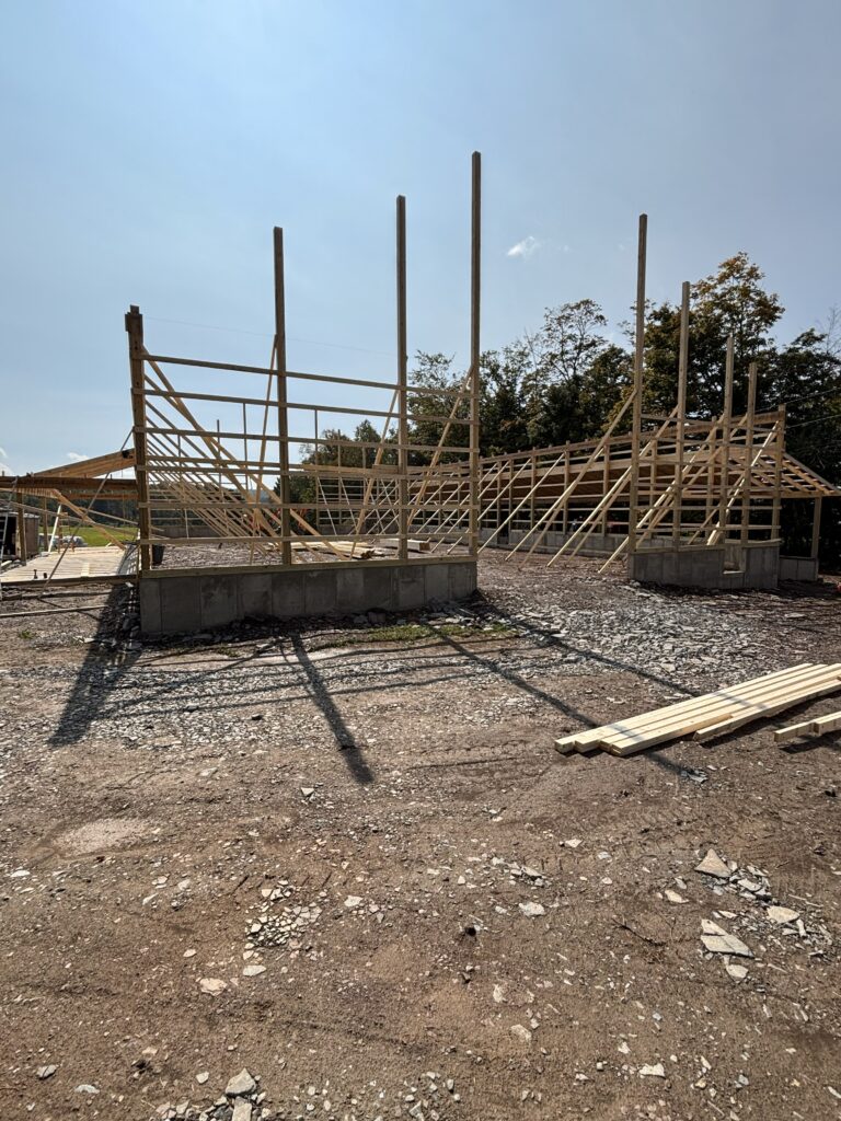 Back Lean-To: 12′ x 92′ with a 4/12 pitch