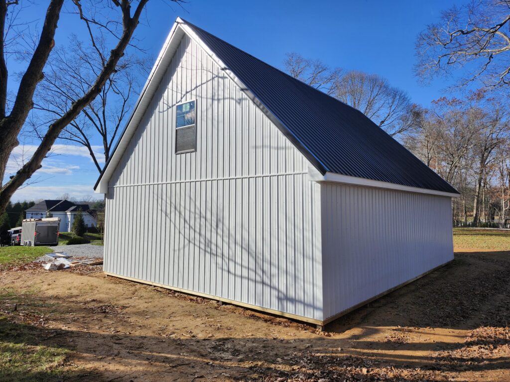 This 30′ x 40′ garage is another great example of a customer taking full advantage of attic trusses — and pushing it even further with a bold 12/12 roof pitch and a 20′ shed dormer that transforms the second floor into a wide-open, usable space. Combined with first floor is fully insulated and finished with bright white liner panel, this build is ready for year round use
