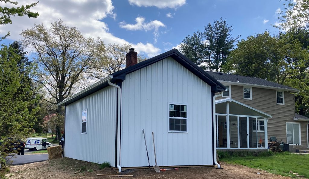Here’s a sweet and simple 1 car garage built recently in the great state of Delaware.  This one measures 14′ wide across the gable end and displays a nice 10′ wide by 8′ high garage door.  The corners of the overhead door are mitered off at a 45 degree angle to give it a little bit more of a residential appearance.  These are what we call ‘Dutch Corners’.  The building is 28′ long which is more than adequate for the vehicle it will be housing.