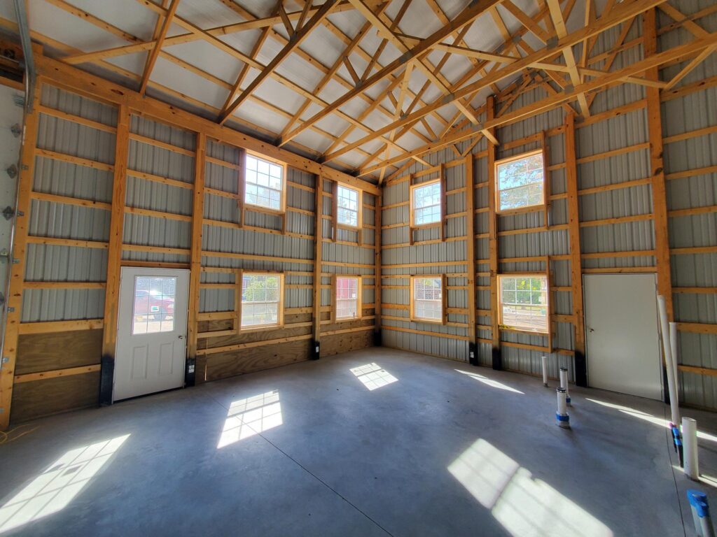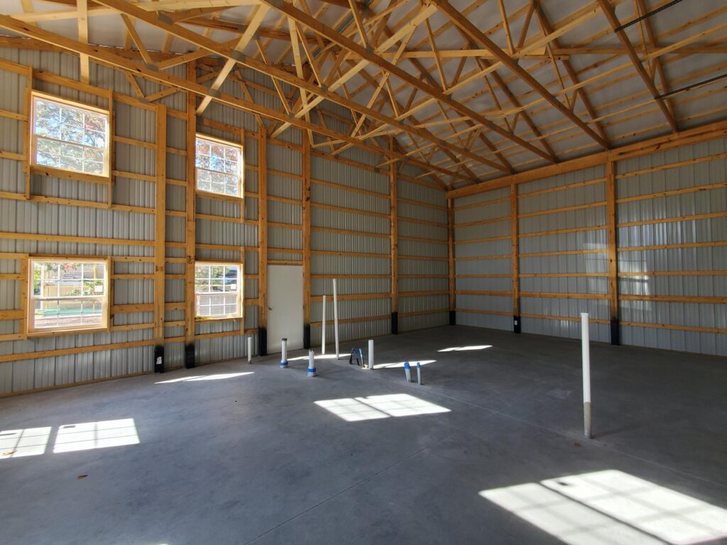 • Post-frame dividing wall with one side finished